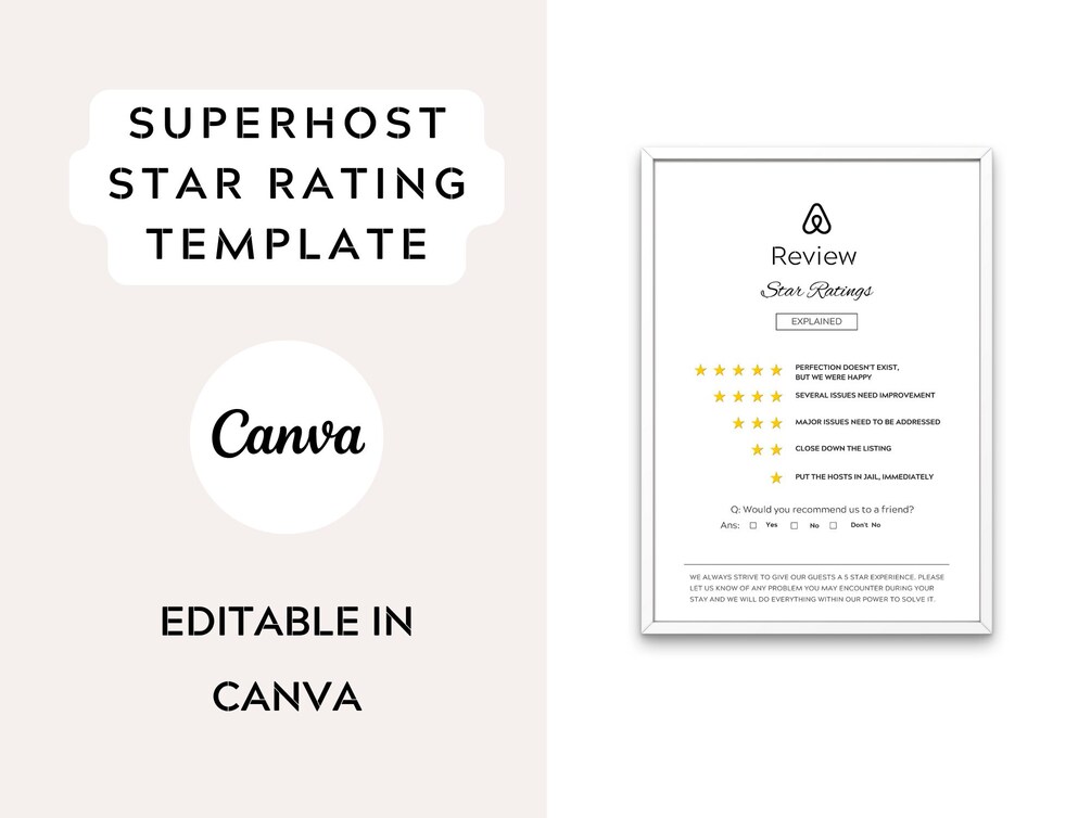 Airbnb Superhost Star Rating Template, Airbnb Sign Template Canva, Superhost Star Rating System Explained, Vacation Rental Owners