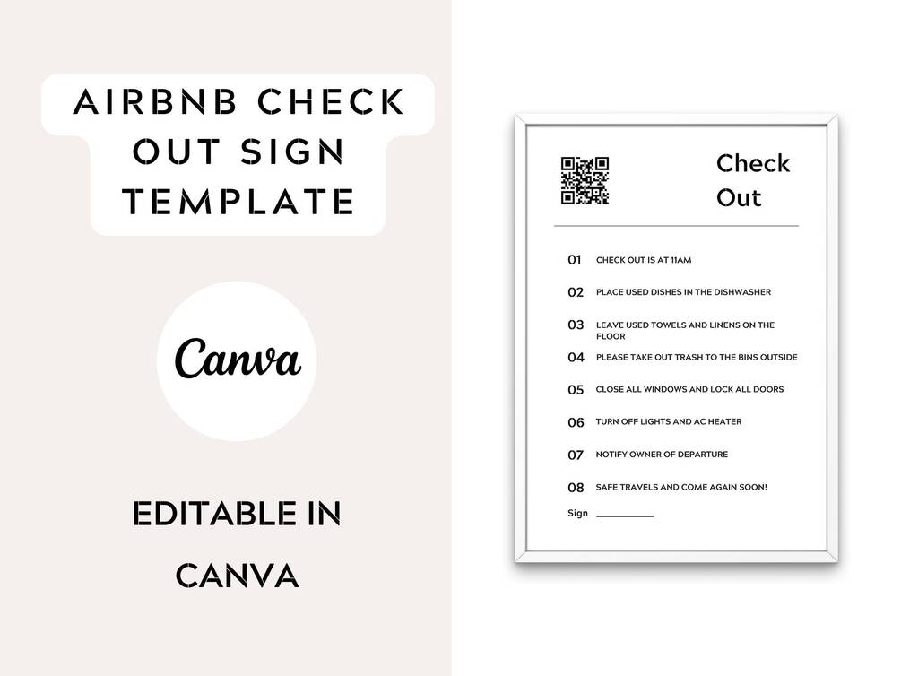 Airbnb Check Out Sign With QR Code Template, Airbnb Superhost, Editable and Printable Vacation Rental Sign, Premium Airbnb Template