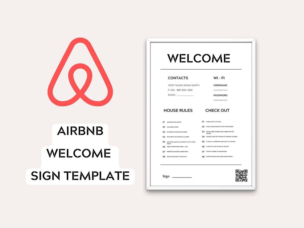Airbnb Welcome Sign Template, Editable VRBO Welcome Sign, Airbnb Welcome Sign Template, Premium Printable House Manual, Canva Template For Airbnb Superhost